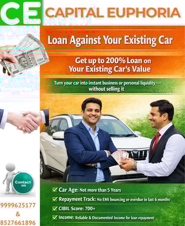 At Capital Euphoria, we offer Loan Against Car solutions to help car owners access quick and hassle-free financing without selling their vehicle. Get the financial support you need while continuing to use your car.